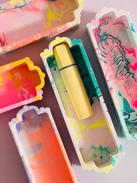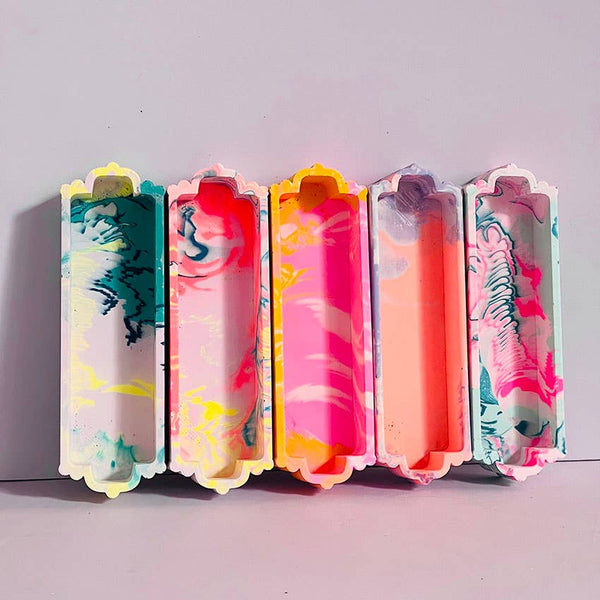 Marbled In Pale Coral, Lilac, Neon Yellow, Navy & Neon Coral, this piece is a visually stunning piece of art, each one is hand poured to give a detailed marbled pattern, this is due to the organic nature of the making process.